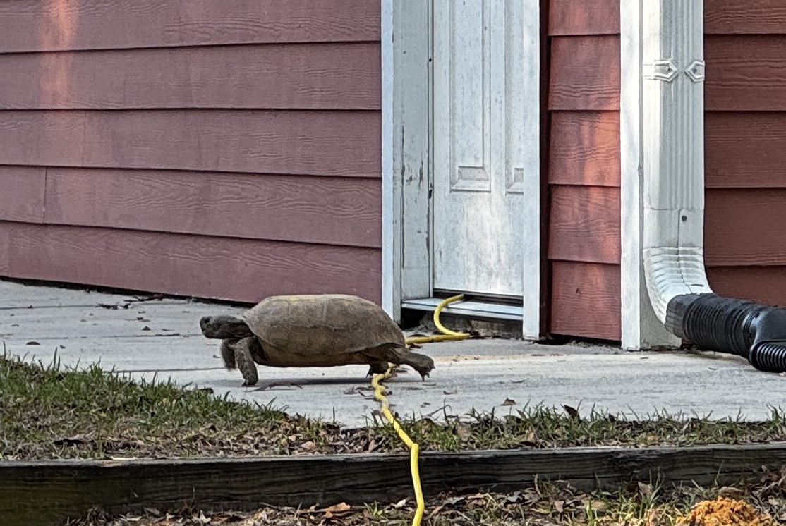 My yard tortoise just showed up again. I don’t want to claim I summoned him.