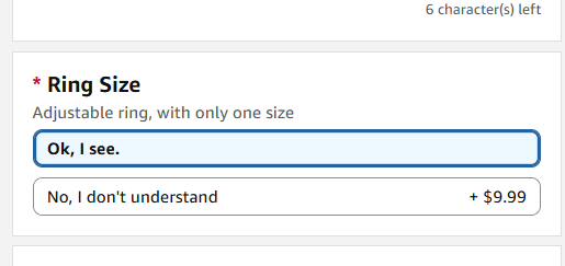 There's a locket ring my daughter wants me to order her from Amazon, and when I went to customize it, this was one of the options: