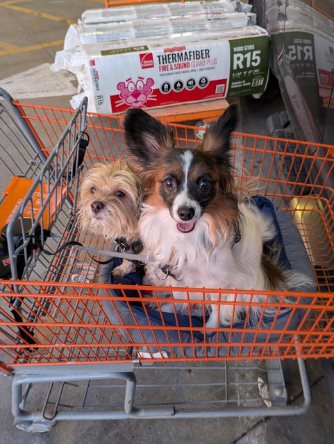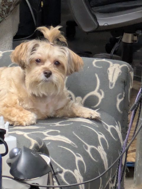 Pickles (blonde shih-tzu/Yorkie) and Mortimer (papillon)